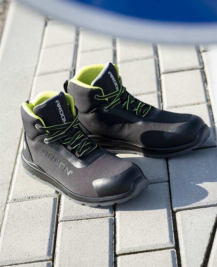 Trzewiki ARDON®SOFTEX HIGH S1P, to obuwie ochronne w sportowym stylu w klasie ochronnej S1P. Cholewkę trzewików wykonano z  z softshellu, co nadaje butom ochrony przed deszczem oraz wilgocią.